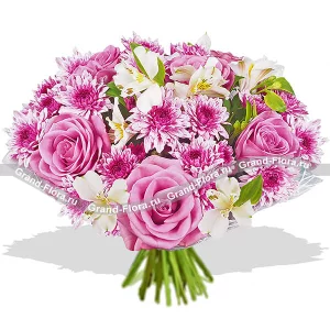 С любовью и нежностью - букет из кустовых хризантем, роз и альстромерийот 3 848 руб. 5 347 руб.Купить