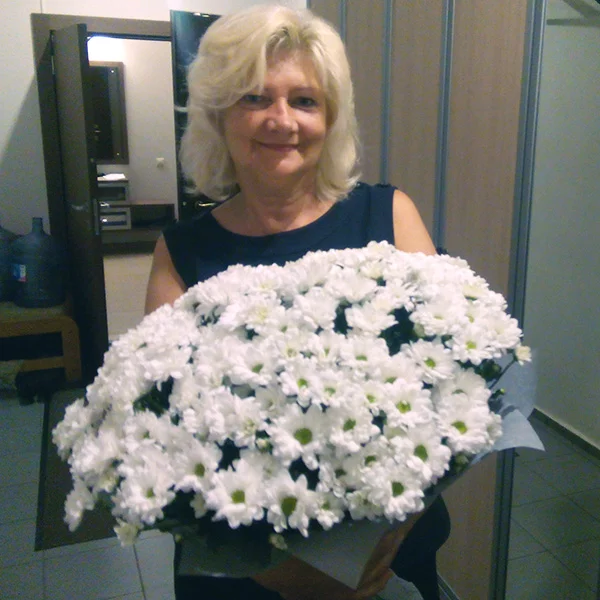Спасибо, искала ромашки, но ромашки видимо сложно найти в это тяжелое время. ))). Но этот букет ничем не уступает в ромашкости ))). Очень высокие хризантемы почти 1 метр. Огромный букет, если будите заказывать 21 ветку. Однозначно рекомендую.