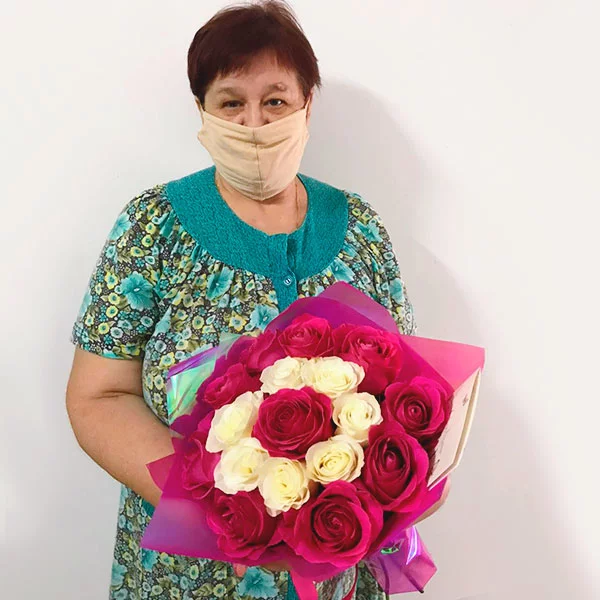 Заказал своей жене в подарок цветы. Для неё в день рожденье это был очень приятный сюрприз. Курьер привез очень красивый и свежий букет роз. Жена в восторге, её было приятно получить подарок от любимого человека.