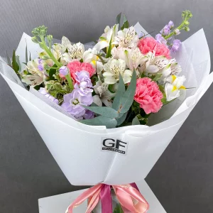 Лучший букет, который я когда-либо заказывала! Гипсофила создает ощущение праздника. Доставили без опозданий, все аккуратно и красиво. Спасибо за вашу замечательную работу!