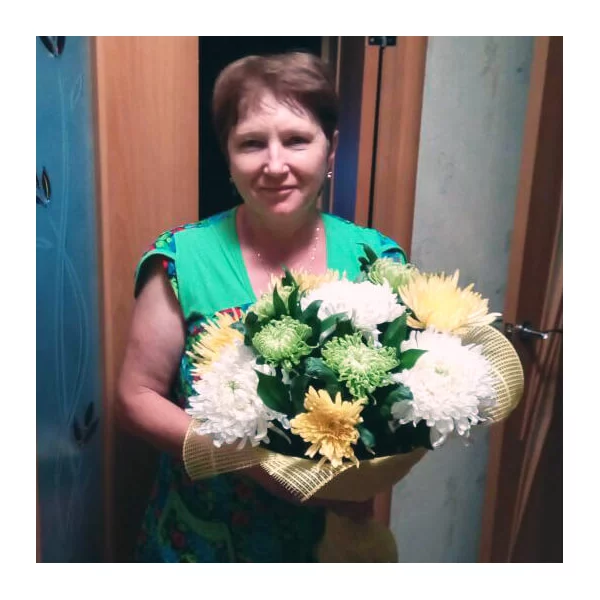 Инна / г. Москва / 02.08.2017Оценка букета:Огромное вам спасибо за проделанную работу. Получатель был в восторге и от самой доставки и от букета. Очень красивые хризантемы, красиво оформлены. Я Очень довольна!!!! СПАСИБО!!!